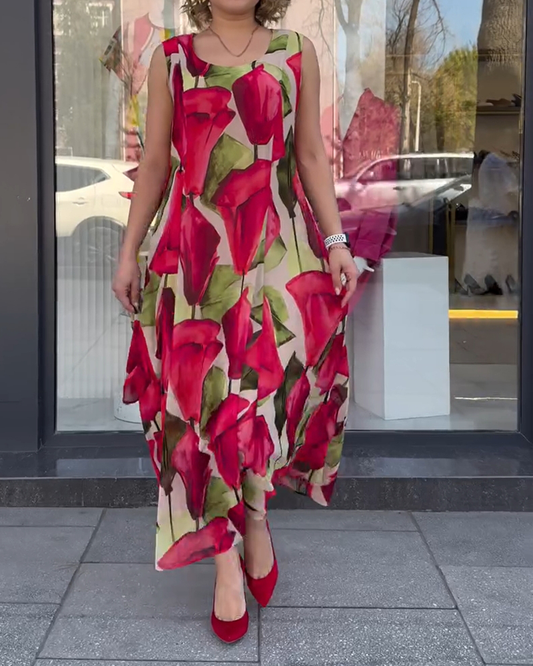 Abito senza maniche stampato con scollo a U
