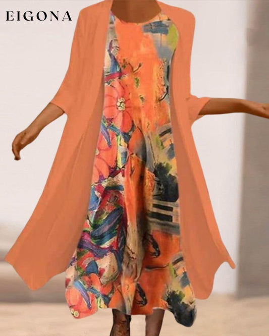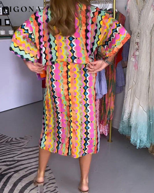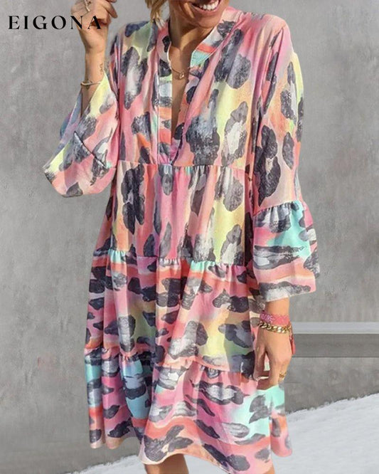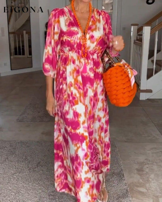 Abito con maniche a 3/4 e scollo a V con stampa alla moda