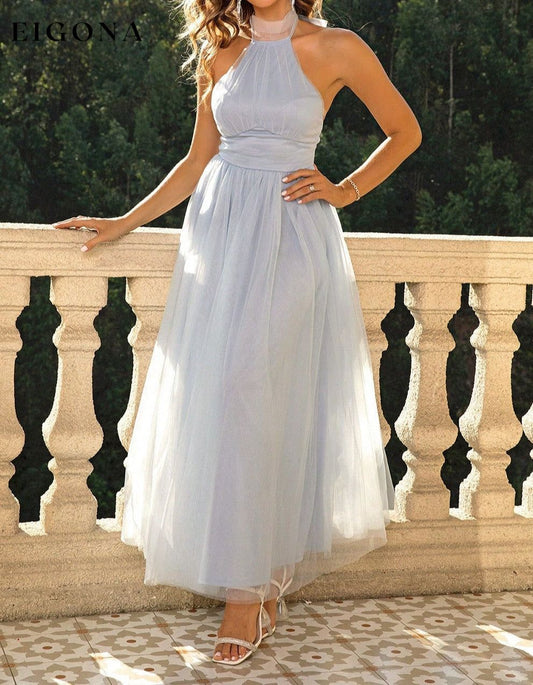 Abito maxi con spacco sul retro e allacciatura con cinturino spaghetti