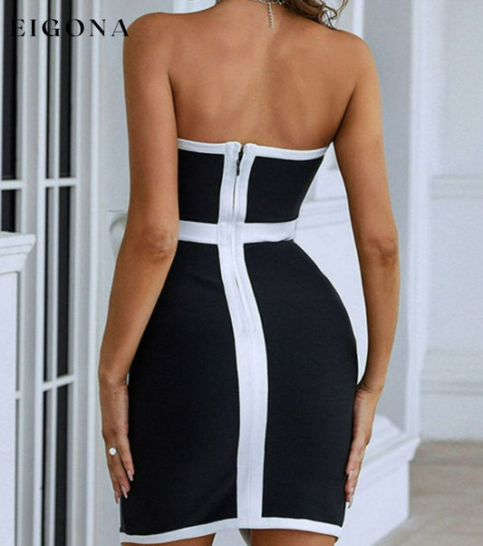 Miniabito senza spalline con dettaglio fiocco a contrasto