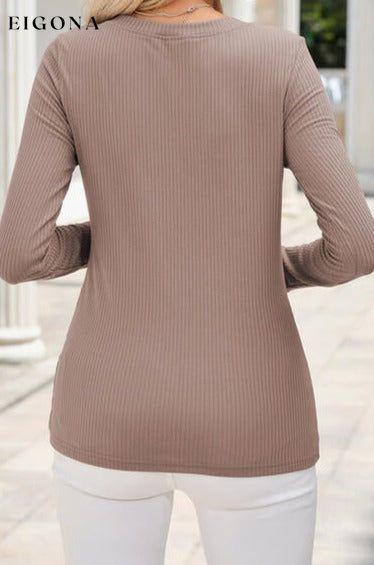 Camicetta a maniche lunghe con scollo a V a costine e tasca