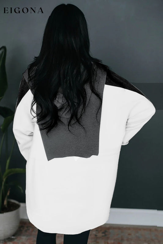 Felpa con cappuccio e scollo abbottonato con cuciture a vista in blocco di colore nero