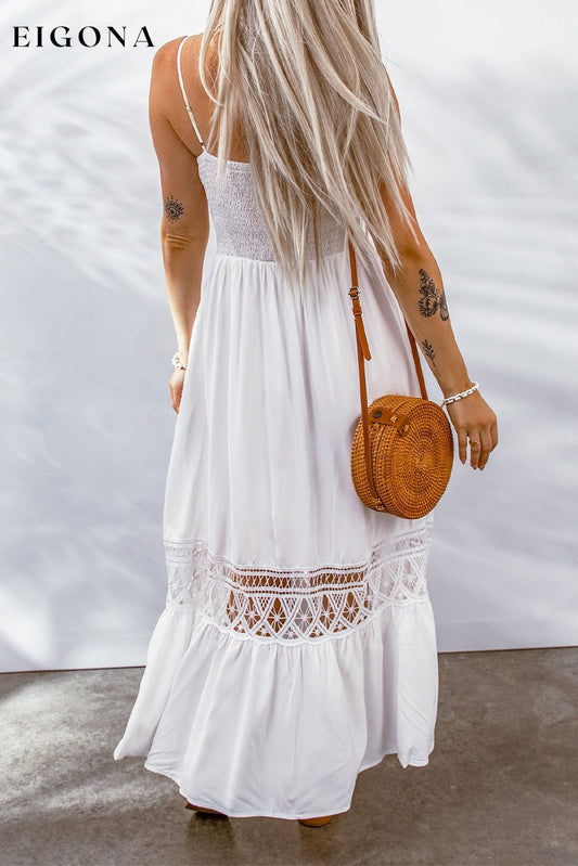 Abito lungo con spalline sottili in pizzo impiombato con bottoni