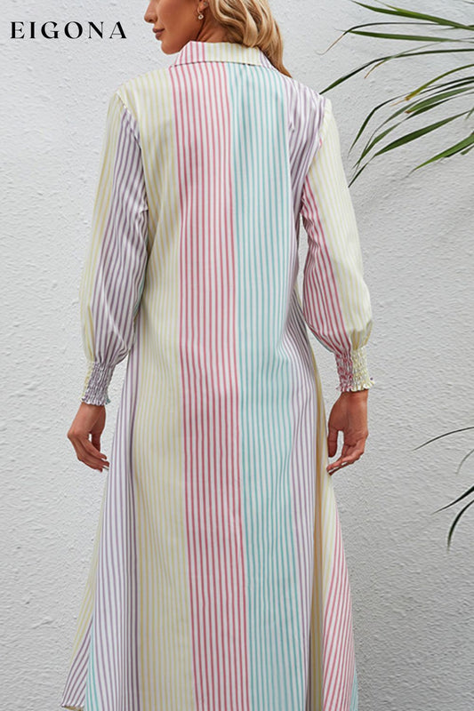 Abito chemisier maxi abbottonato a righe arcobaleno