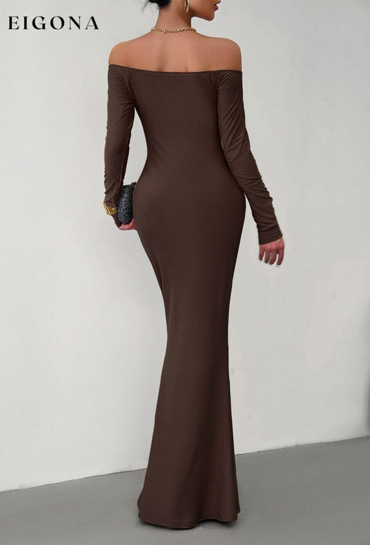 Abito lungo casual a maniche lunghe con spalle scoperte