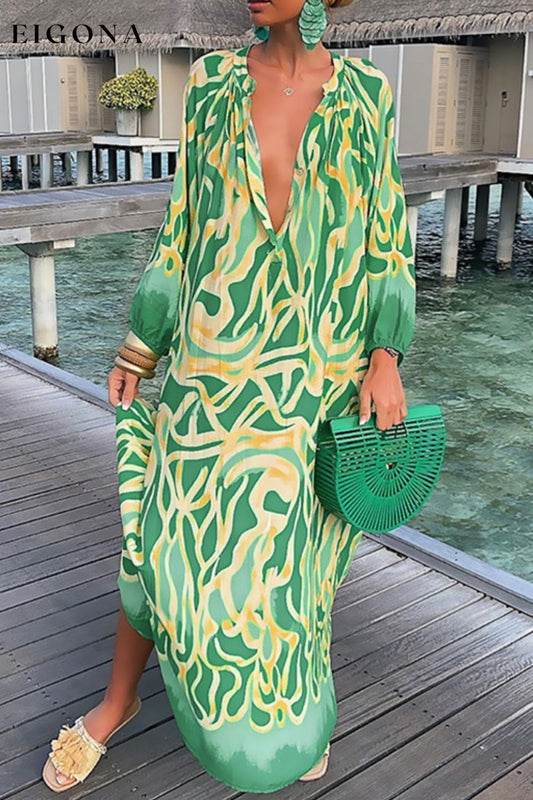 Abito con maniche a palloncino con bottoni e stampa astratta
