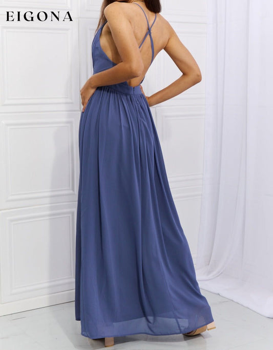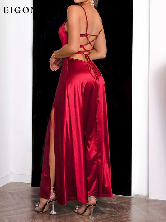 Abito maxi con spacco sul retro e allacciatura con cinturino spaghetti