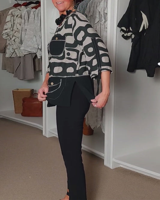 Giacca casual con bottoni e tasca con stampa a contrasto