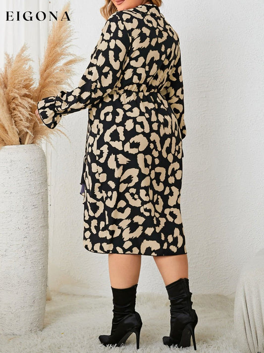 Abito con maniche a balza e collo in cotta leopardata taglie forti