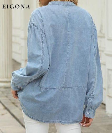 Top in denim con collo abbottonato e orlo grezzo