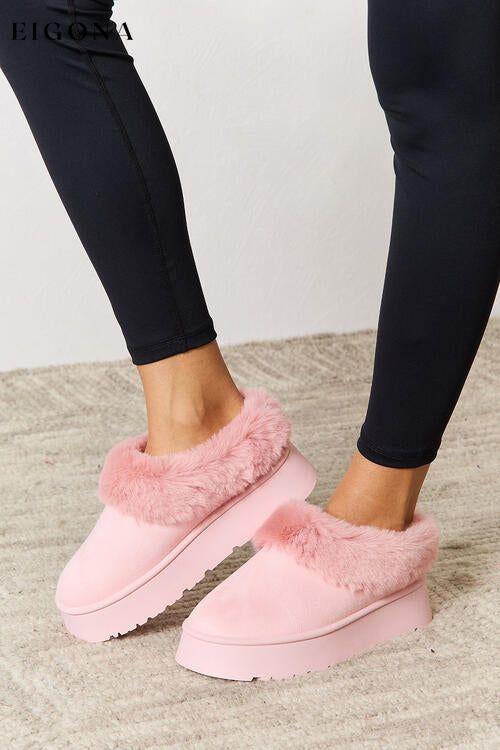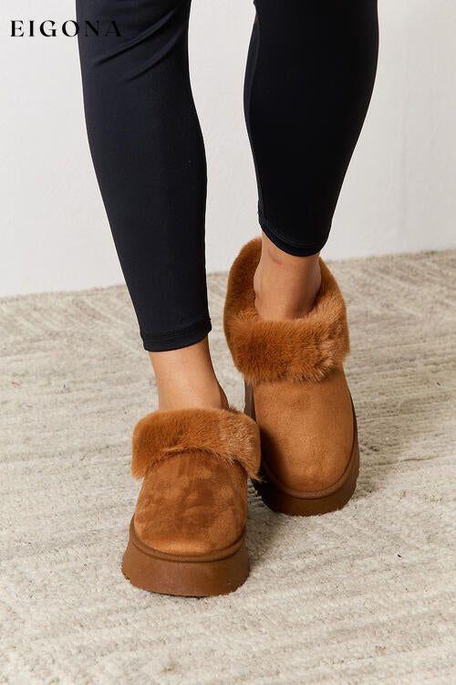 Stivaletti con plateau grosso e peloso, pantofole con stivaletto