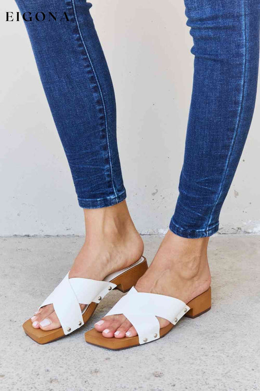 Ciabatta con zoccolo in legno Criss Cross in bianco