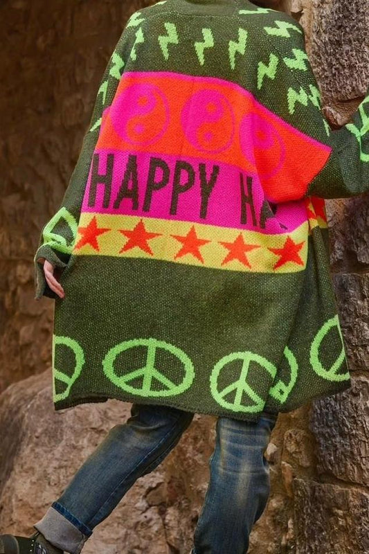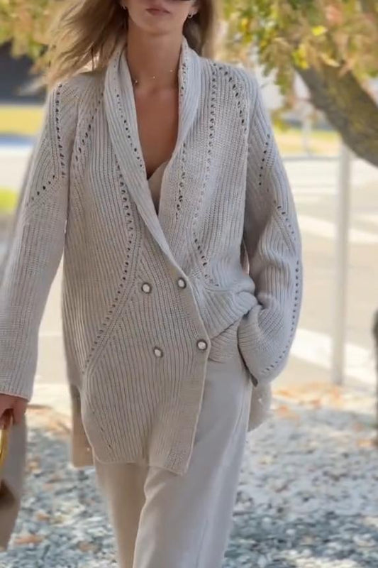 Giacca cardigan casual da donna in maglia piatta e con colori a contrasto