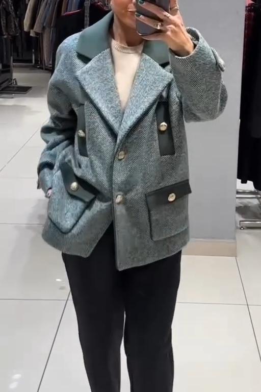 Giacca da donna con revers a spina di pesce e blocchi di colore
