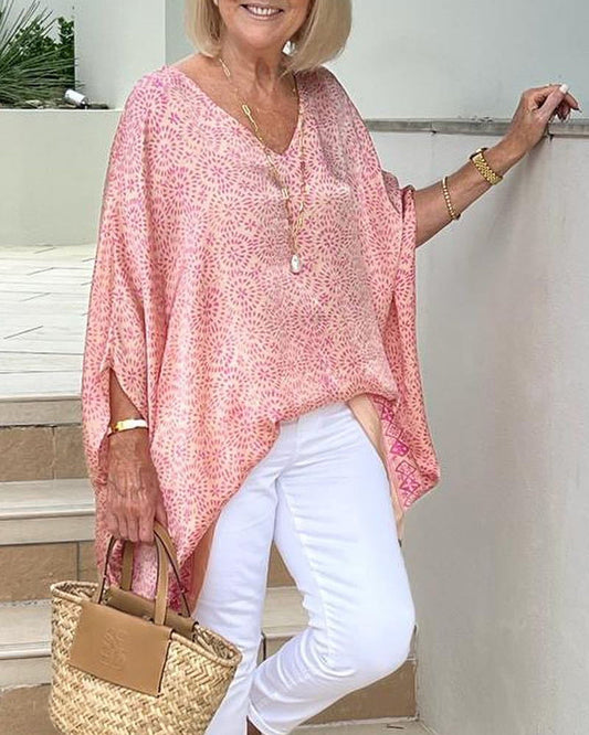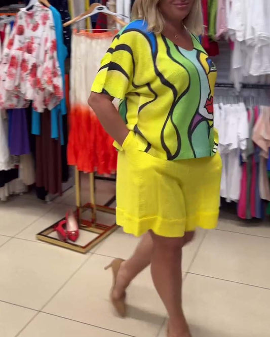 Camicetta casual a maniche corte con scollo a U e stampa verticale