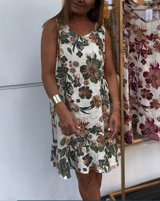 Abito patchwork con maniche a campana con stampa floreale colorata