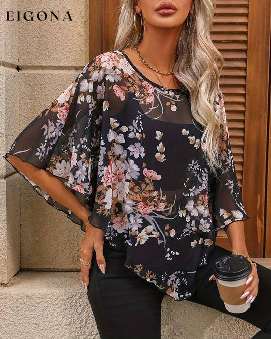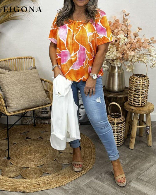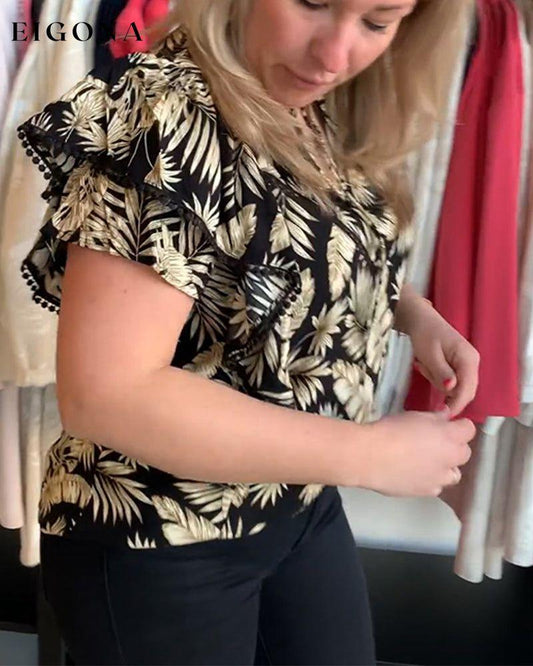 T-shirt stampata con scollo a V e abbottonatura diagonale
