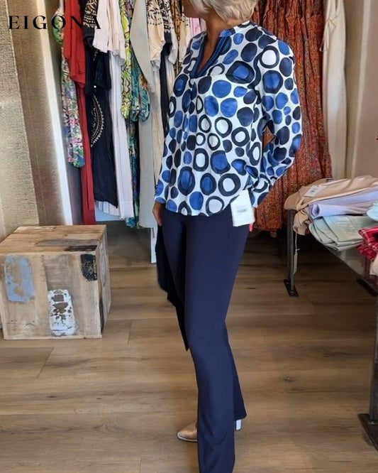 Blusa a maniche lunghe con scollo a V e stampa a pois