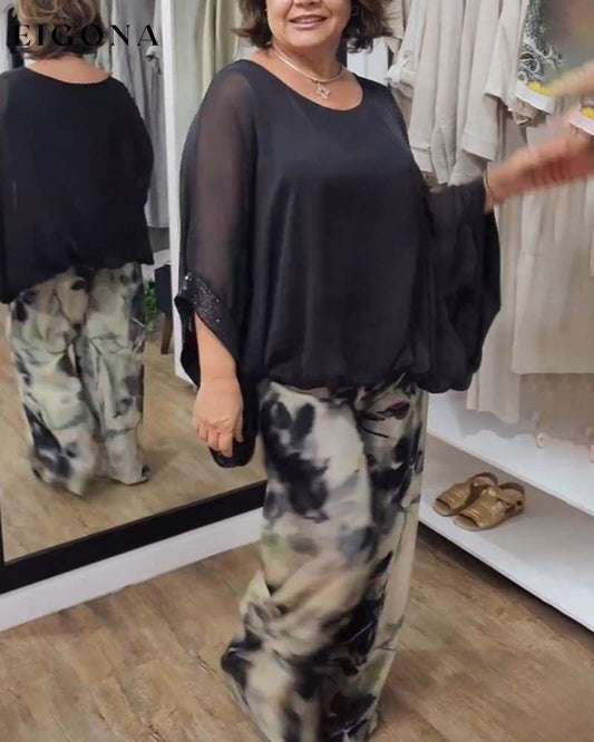 Top tinta unita con scollo tondo e maniche a pipistrello