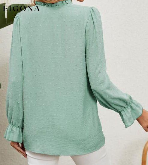 Camicetta da donna con volant e colletto rialzato con bottoni