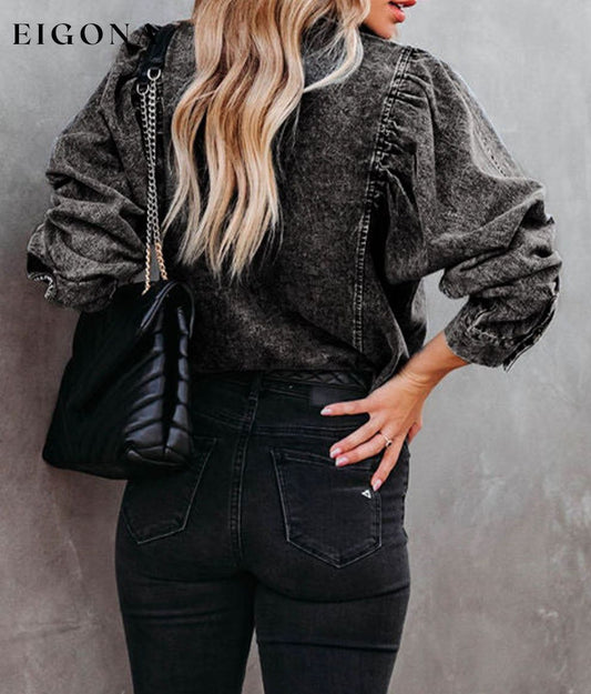Giacca di jeans nera abbottonata con maniche a sbuffo