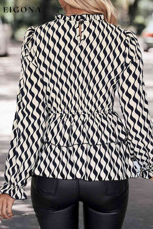 Camicetta peplo con maniche a palloncino e scollo a V a farfalla