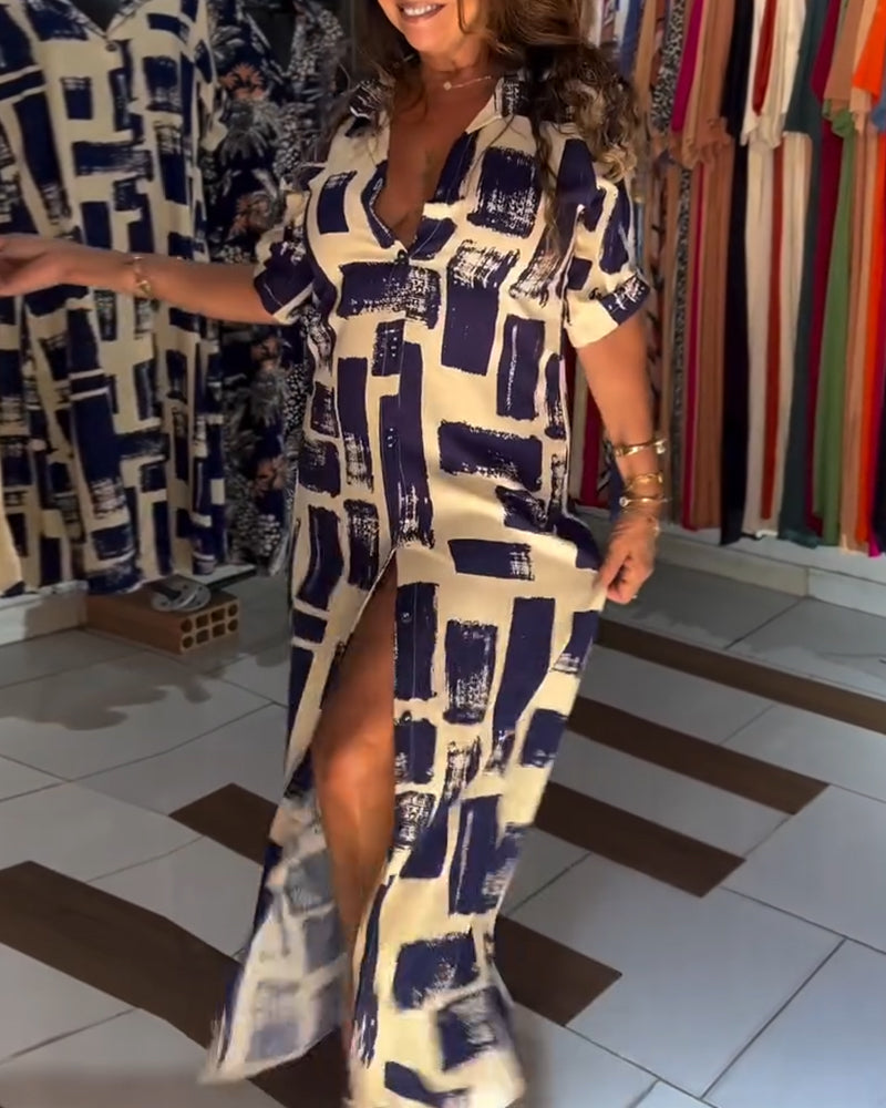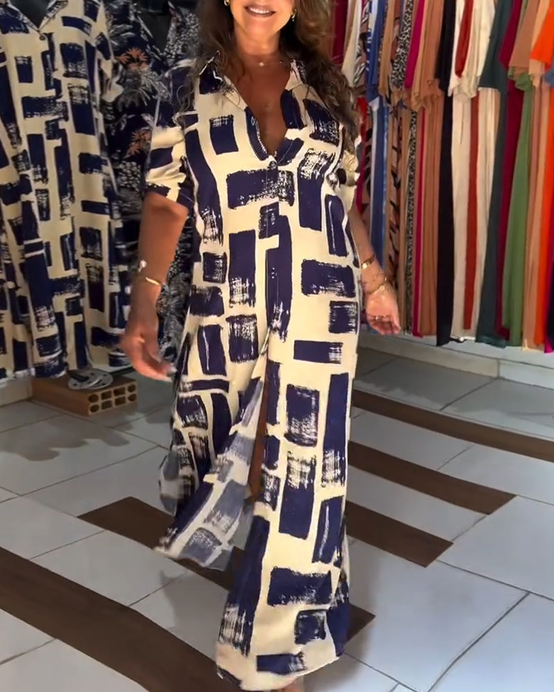 Abito a quadri con spacchi sul revers e blocchi di colore