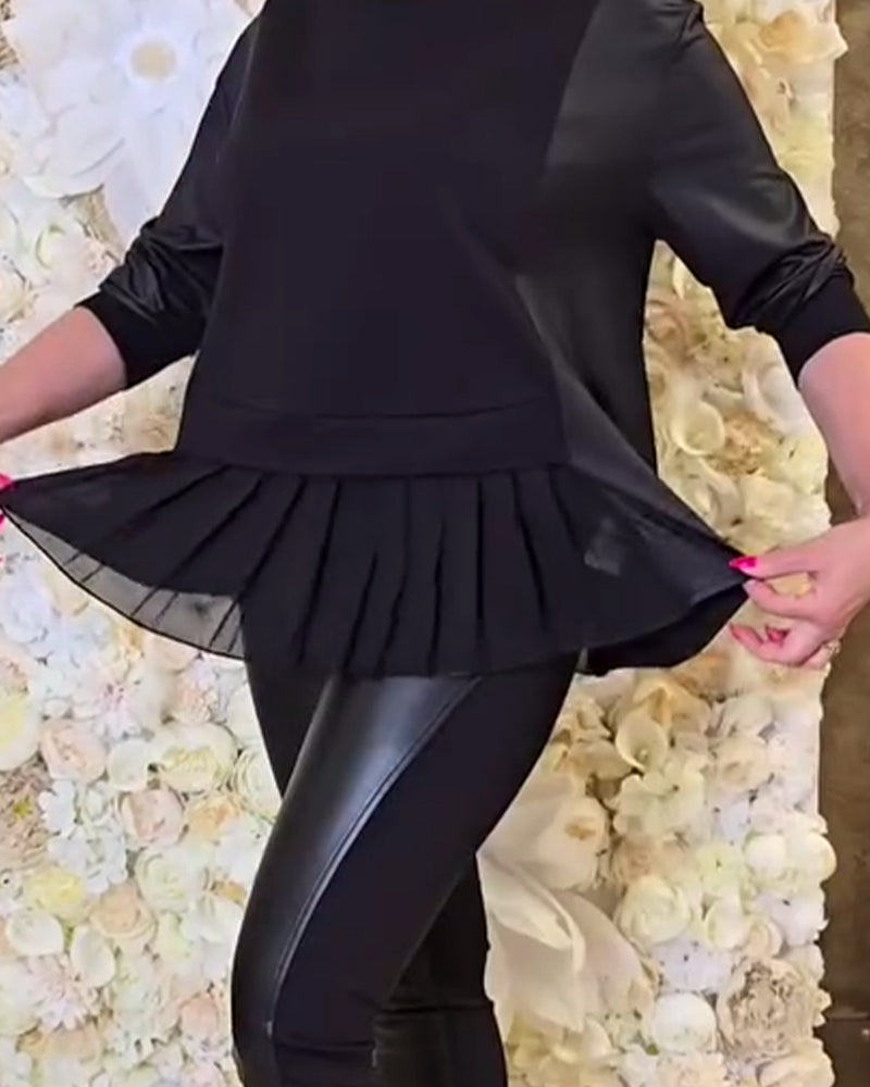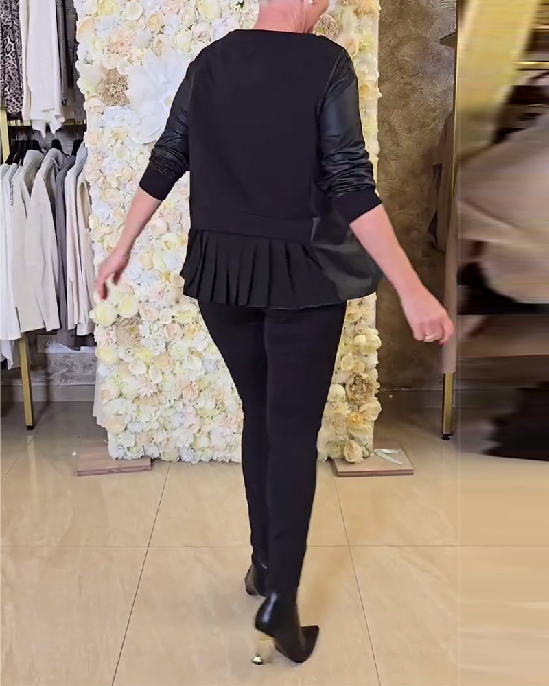 Solid Color Patchwork Long-Sleeved Sweatshirt