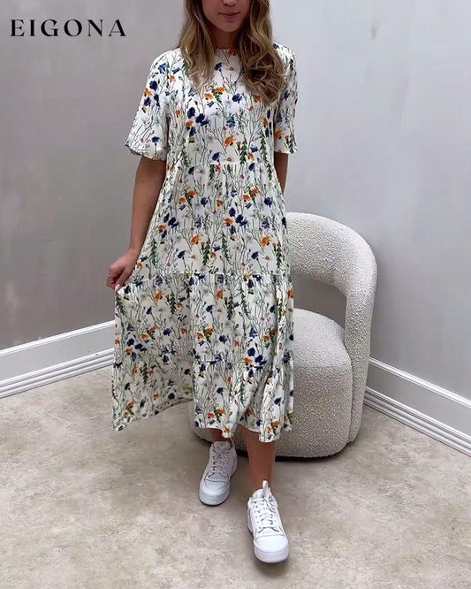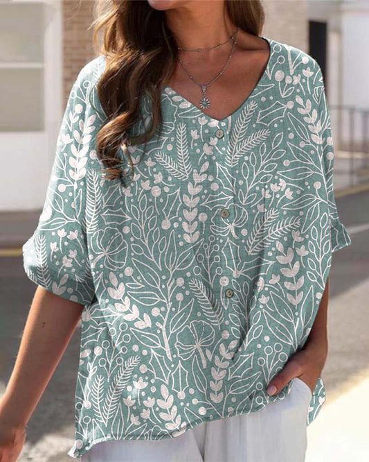 Lys rosa stort blomstermønster Drop Shoulder-genser