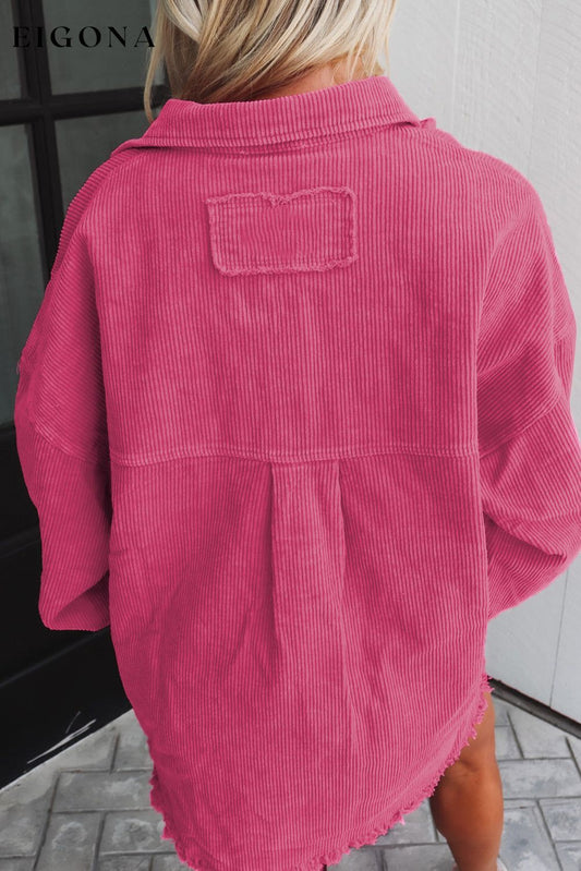 Bright Pink Corded Dual Chest Pocket Raw Hem Shacket