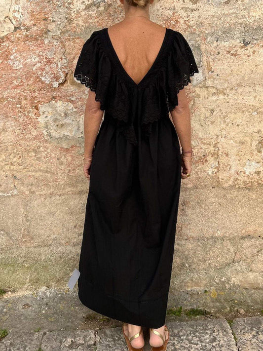 Solid color lace stitching elegant dress