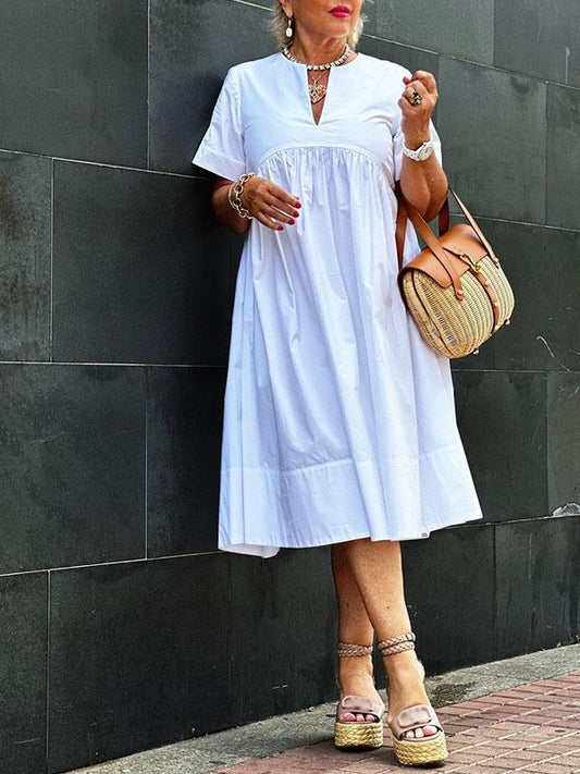 Ensfarget V-hals avslappet kjole med sommerfuglermer