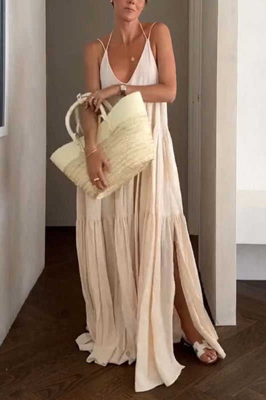 Kvinners uformelle ensfarge maxikjole med plissert strandrem