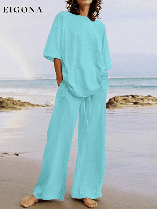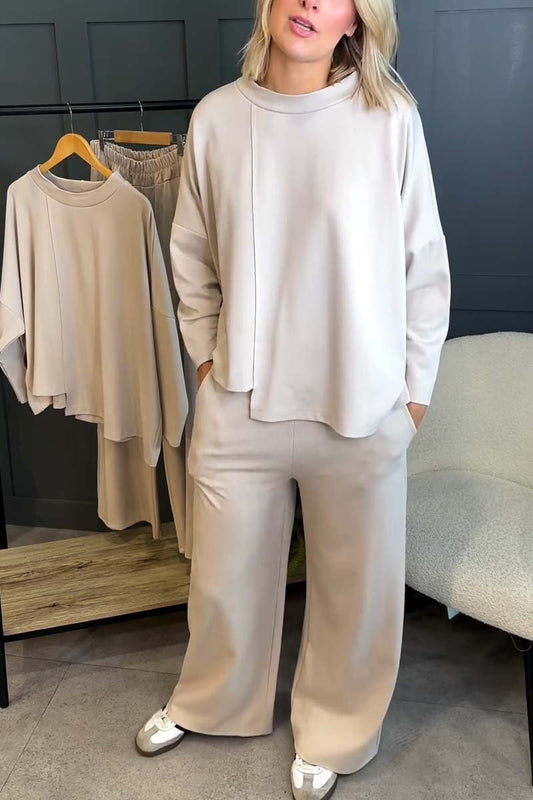Ensfarget ensfarget langermet genser og bukse for kvinner i todelt sett