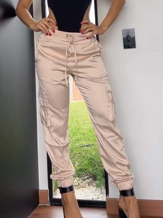 Uformelle arbeidsbukser i ensfarget sateng for kvinner