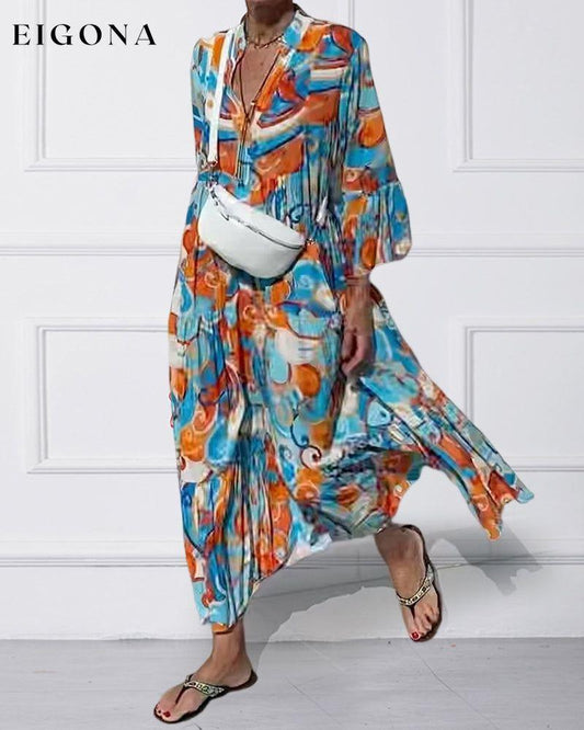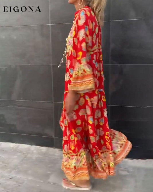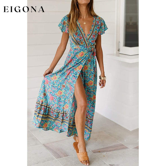 Kvinner Boho Summer Side Split Dyp V-hals Kortermet Maxikjole med belte