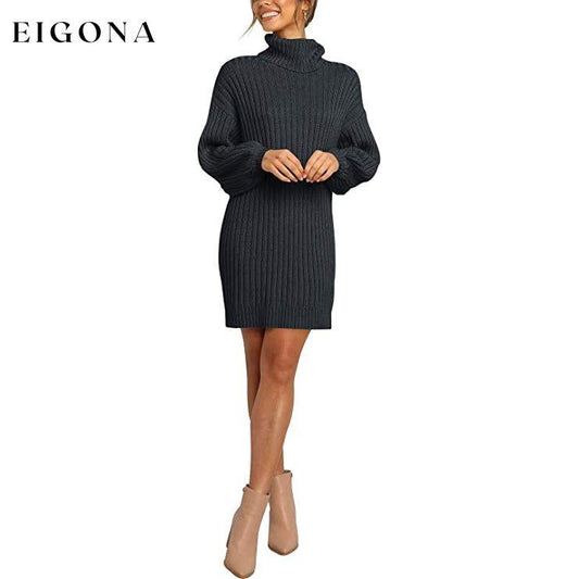 Kvinner Turtleneck Lang lanternermet Uformell Løs Oversized genserkjole