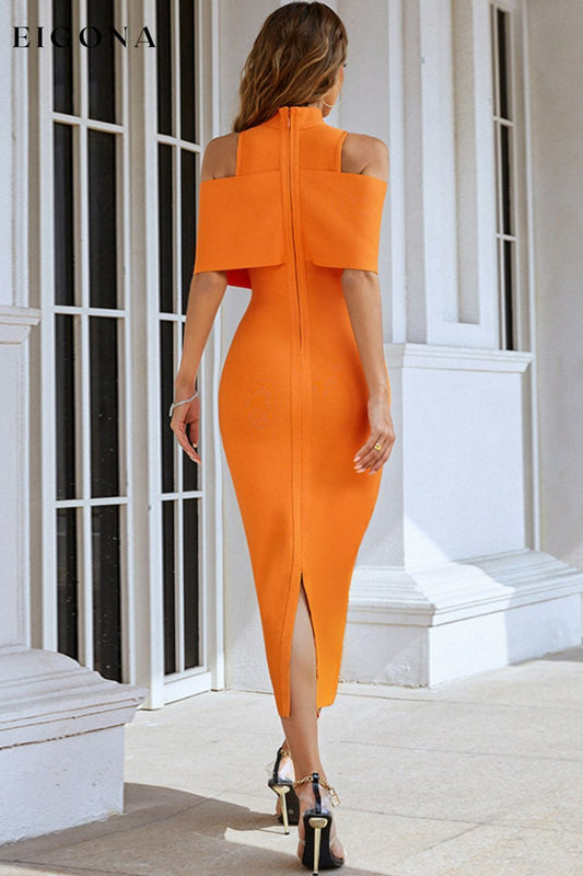 Cold-Shoulder Mock Neck Slit Midi Dress