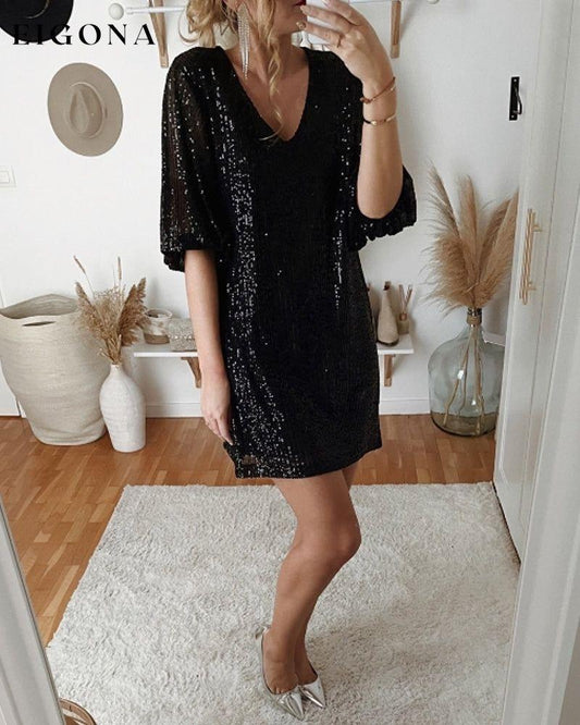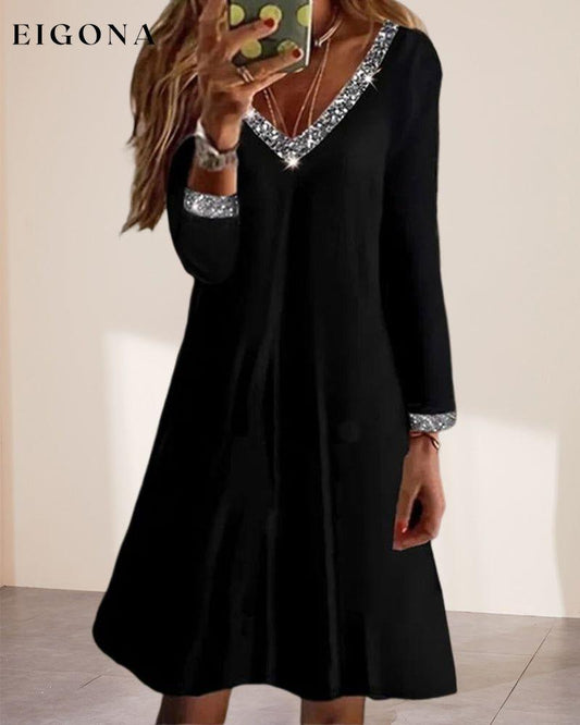 Langermet sexy kjole med paljetter i knelengde