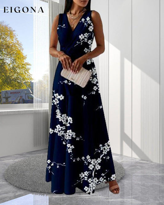 Printet V-hals tank lang kjole