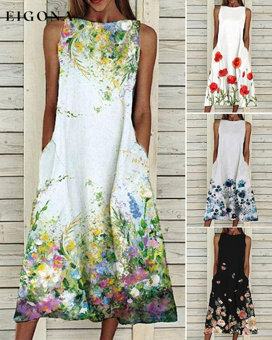 Ermeløs kjole med blomstertrykk