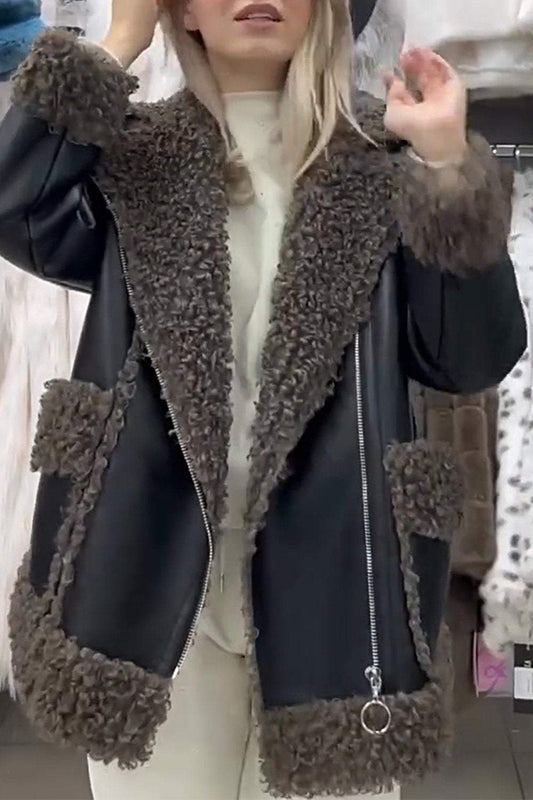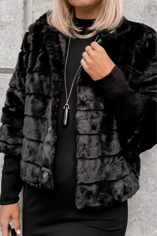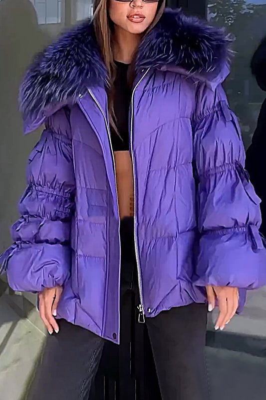 Women's Winter Solid Color Warm Furry Zipper Hooded Coat