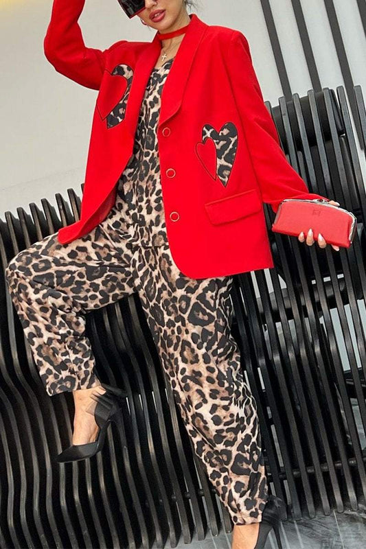 Women's Spring/fall Solid Color Leopard Print Suit Jacket