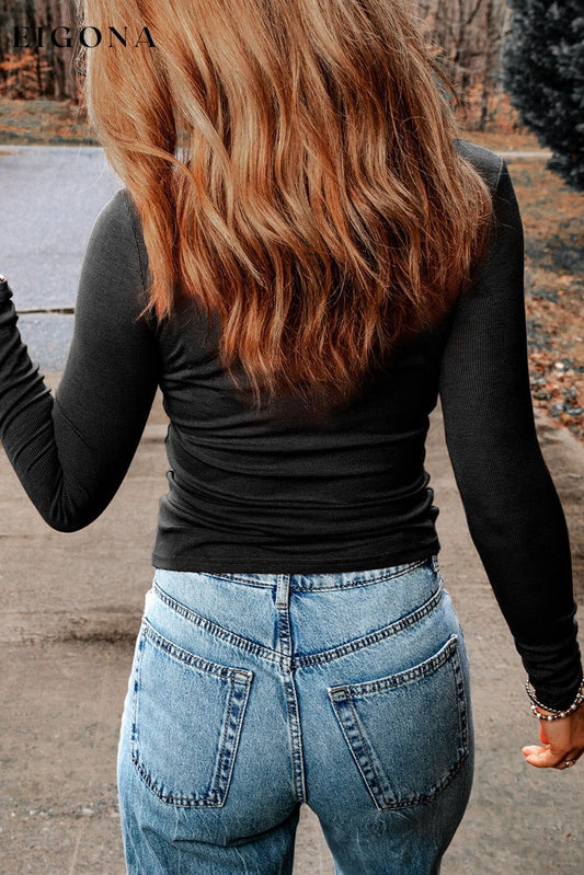 Cutout Turtleneck Ribbestrikket Langermet topp