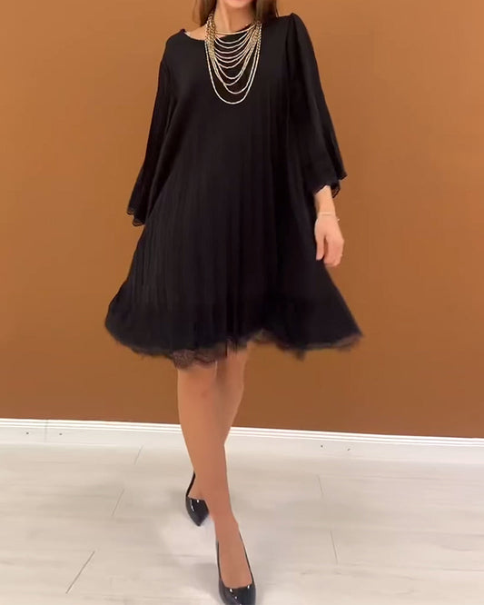 Round Neck Long Sleeve Lace Patchwork Dress