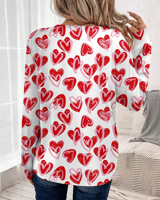 Round Neck Heart Print Long Sleeve Top