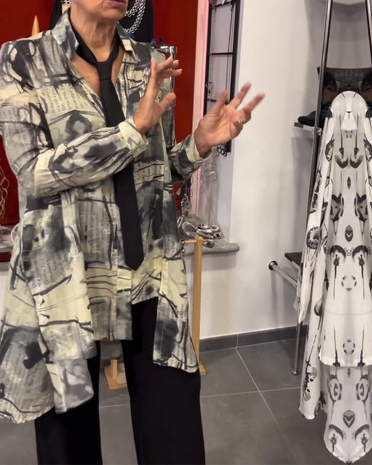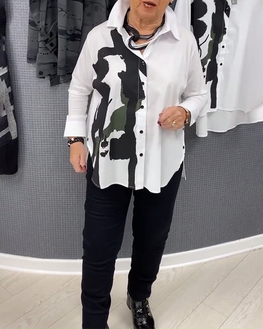 Casual Lapel Button-Down Long Sleeve Printed Blouse
