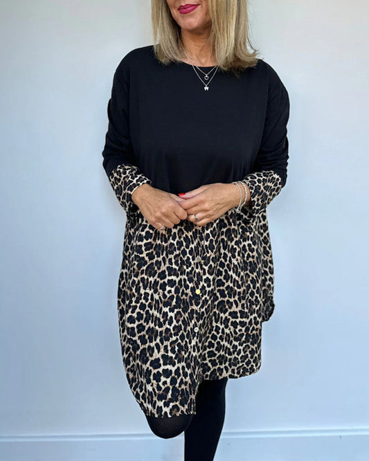 Round Neck Leopard Print Long Sleeve Dress