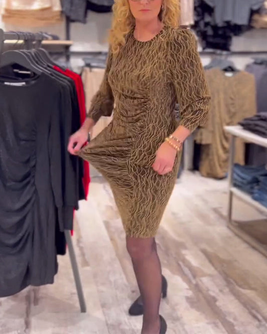 Temperament Slim Fit Printed Long Sleeve Dress