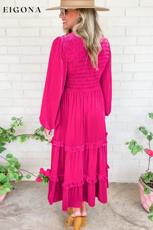 Rund hals fløyel smocked volangermet kjole